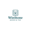 WinStone Books & Tax logo featuring an open book with a large letter W inside, above the text 'WinStone' and 'Books & Tax'.